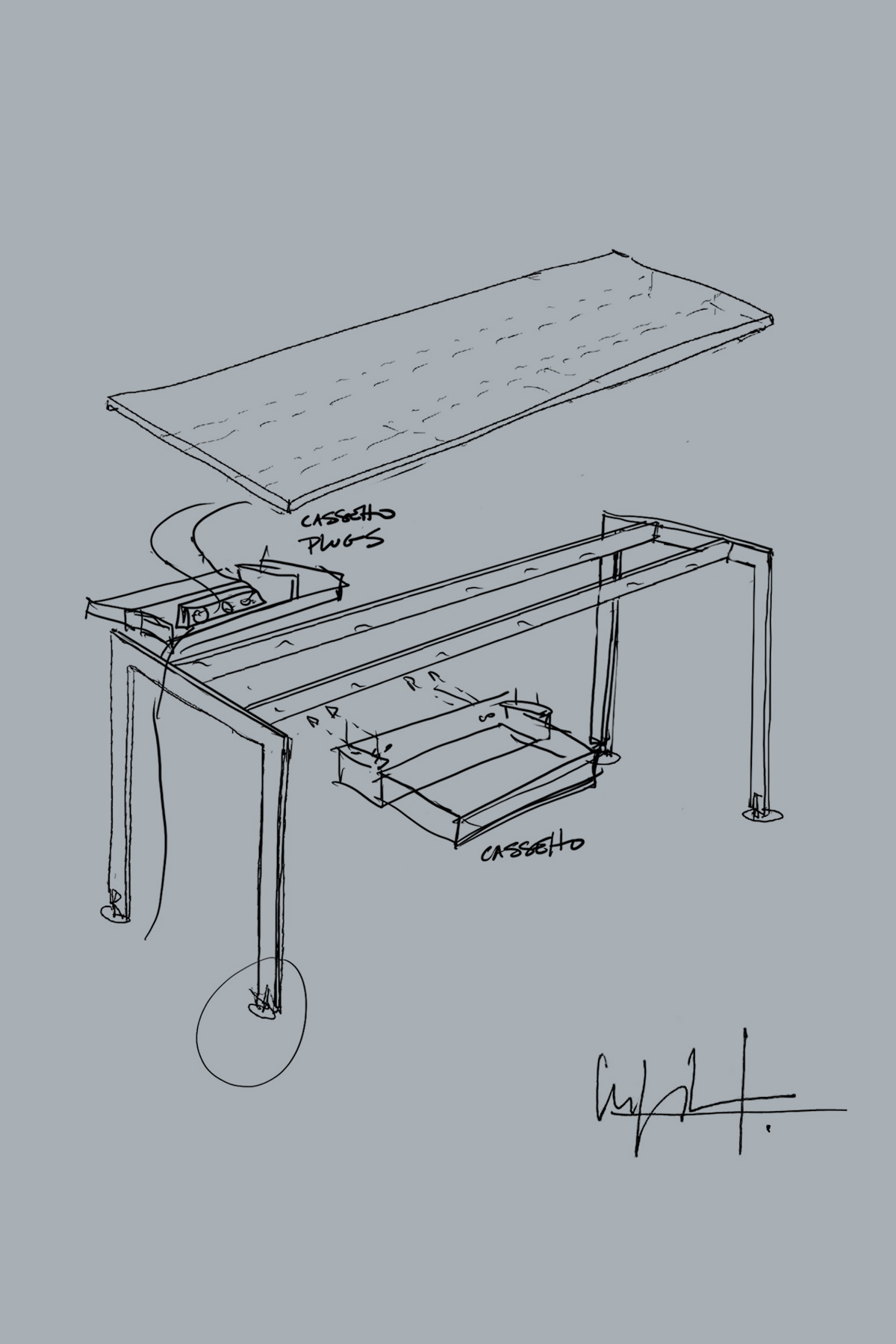 La cornice, infatti, oltre ad essere un dettaglio estetico, è funzionale a celare il sistema meccanico, così anche eventuali accessori di cui Foil può essere dotato, a partire dai pratici cassetti.