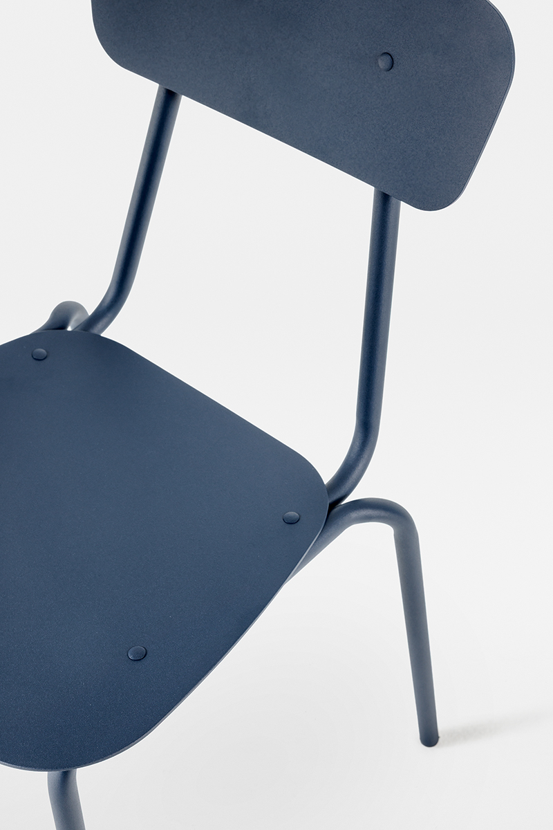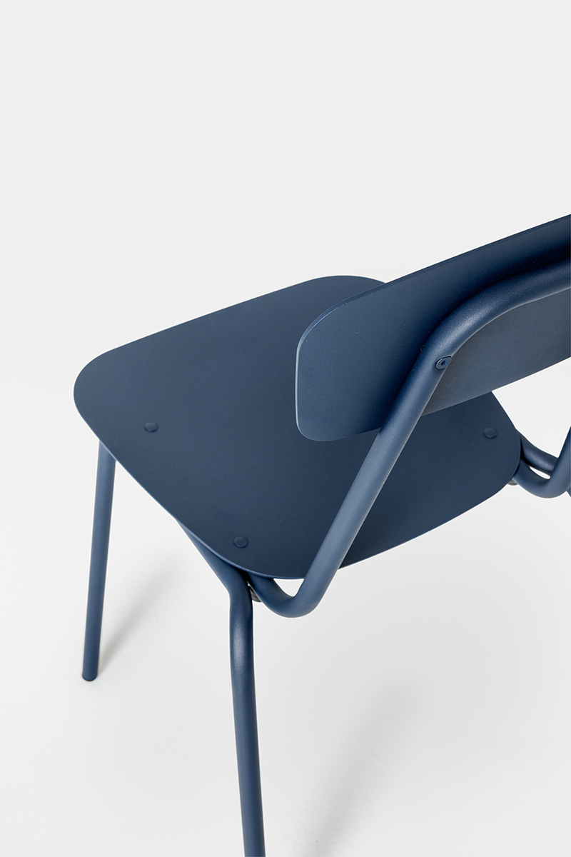 Simple Metal is a chair with an essential and timeless design, whose strength lies in the purity of its forms and functionality. Its linear silhouette, composed of an aluminum seat and backrest combined with a steel frame, is designed to withstand outdoor use without sacrificing elegance and design.