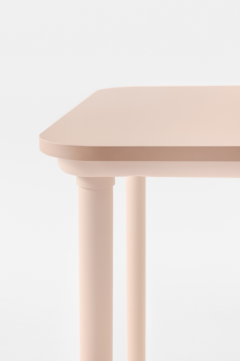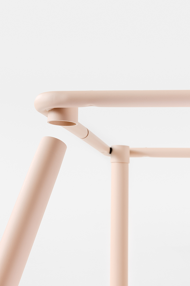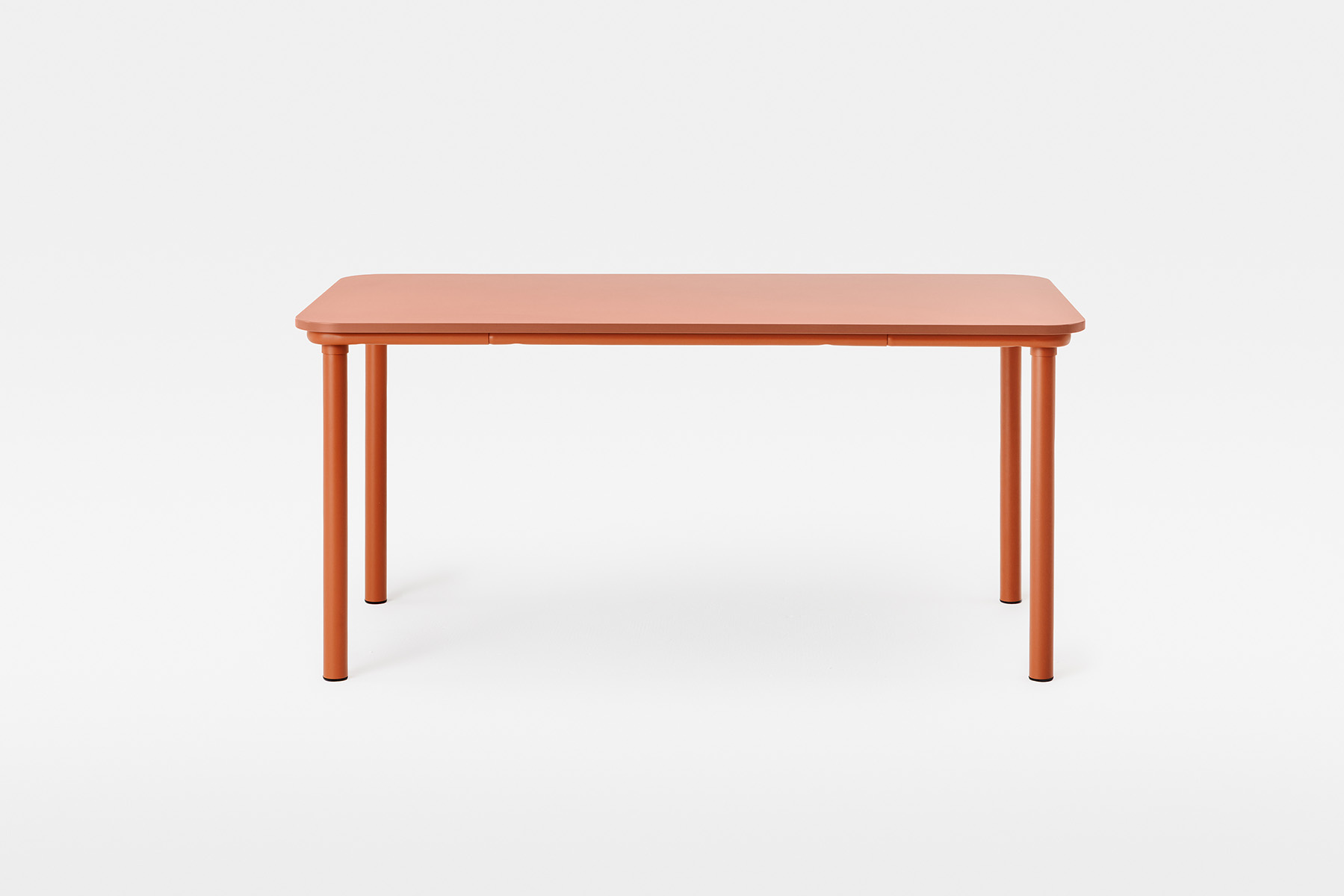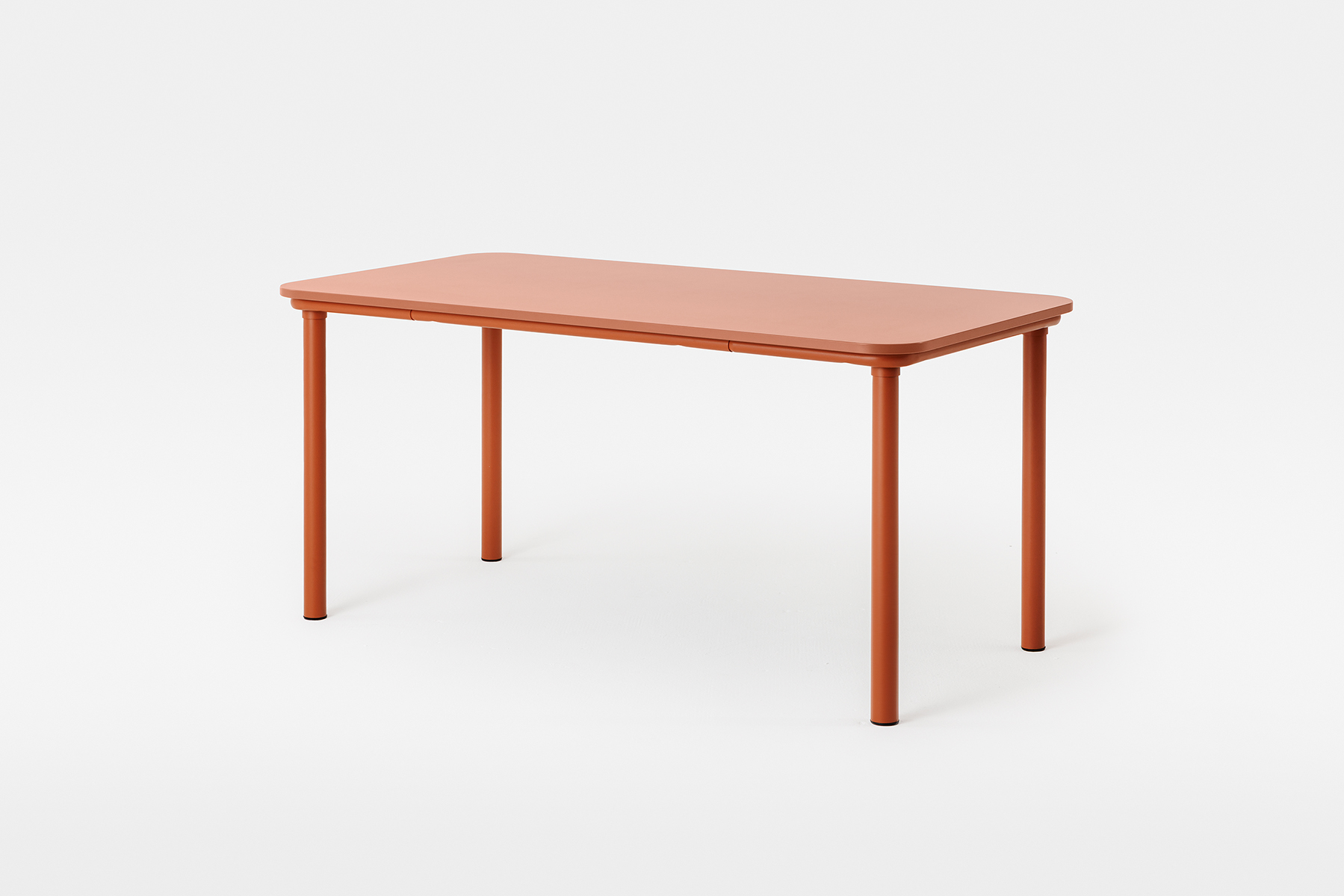 220 is a table designed for contract use with an easily disassemblable steel structure that allows it to be stored by reducing the overall size. Entirely made of steel structure and round legs fixed to the structure by means of interlocking, without the use of screws.