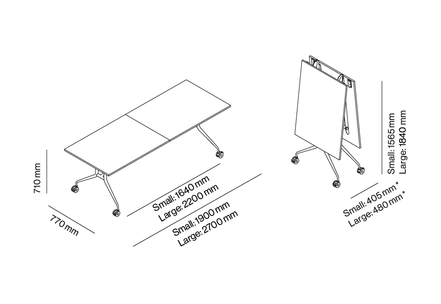 * With Tops: min 405 mm – max 480 mm