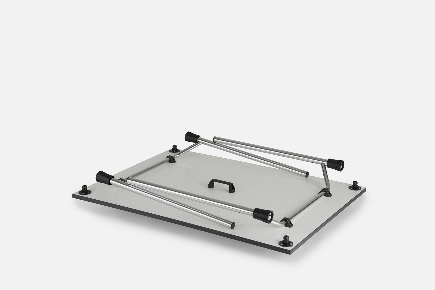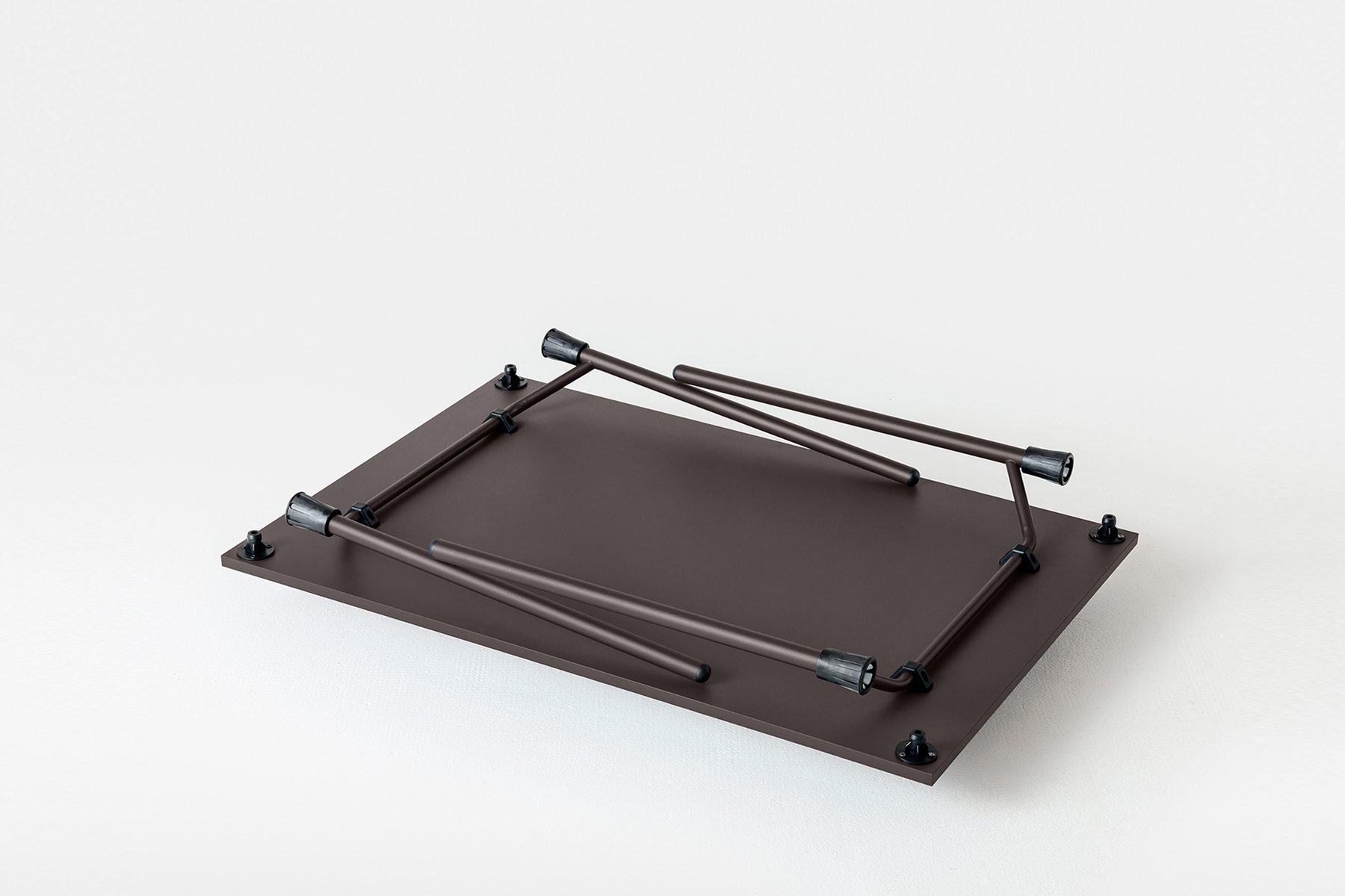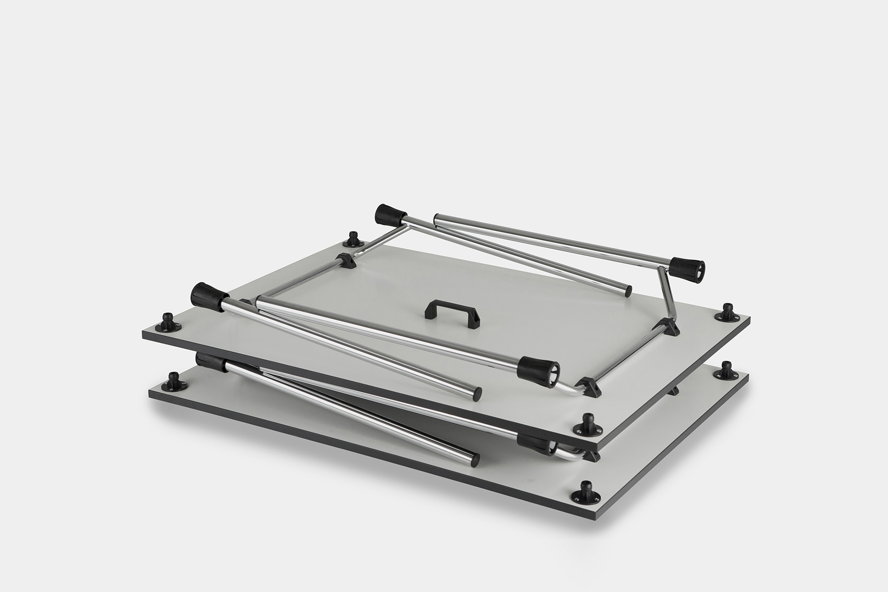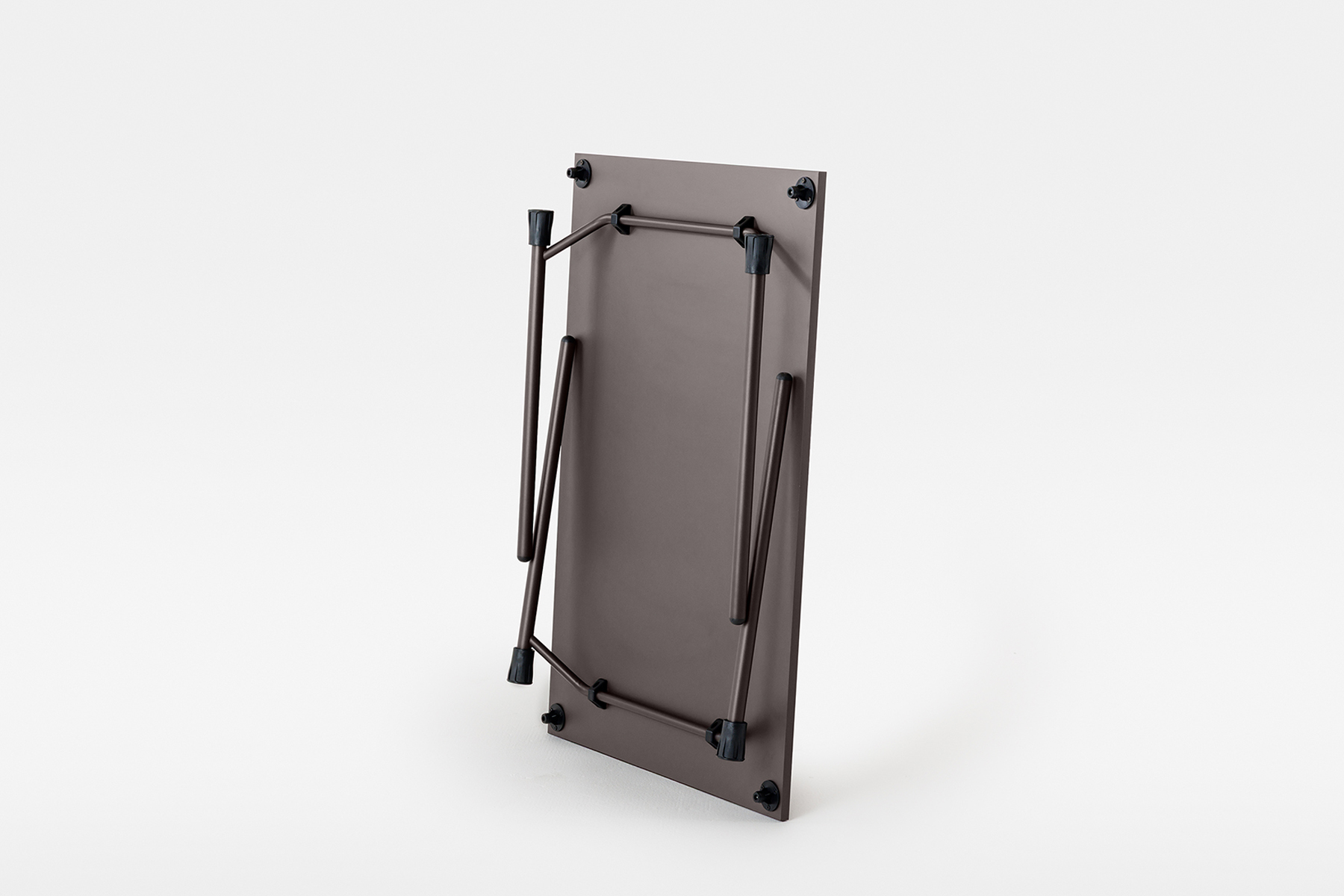 Work spaces are becoming flexible and dynamic, as well as shared. Piuma is a practical, lightweight and easy-to-handle table that allows for quick changes in spaces, to switch from training to studio or from co-working to single desk. Table with foldable steel legs equipped with a simple and aesthetic nylon mechanism that integrates the innovative leg locking system.