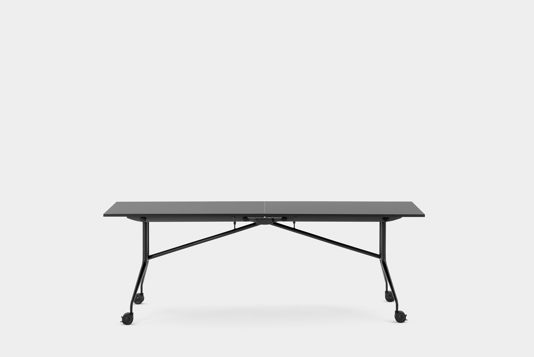 Argo Libro est la grande table pliante et compacte qui, une fois repliée, n’occupe que 40 cm. Disponible dans une large gamme de tailles, elle comprend également la version XL, conçue pour des plateaux jusqu’à 1200 mm de profondeur.