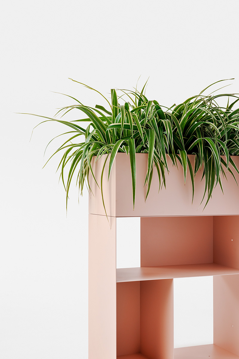 Naturale evoluzione dell’iconica libreria componibile B302, ne rielabora il linguaggio progettuale trasformandolo in un elemento capace di instaurare un dialogo armonico tra verde e architettura. La struttura è progettata per accogliere un contenitore mobile e un sottovaso interno, soluzioni che semplificano la gestione delle piante e rendono più agevoli le operazioni di manutenzione e pulizia.