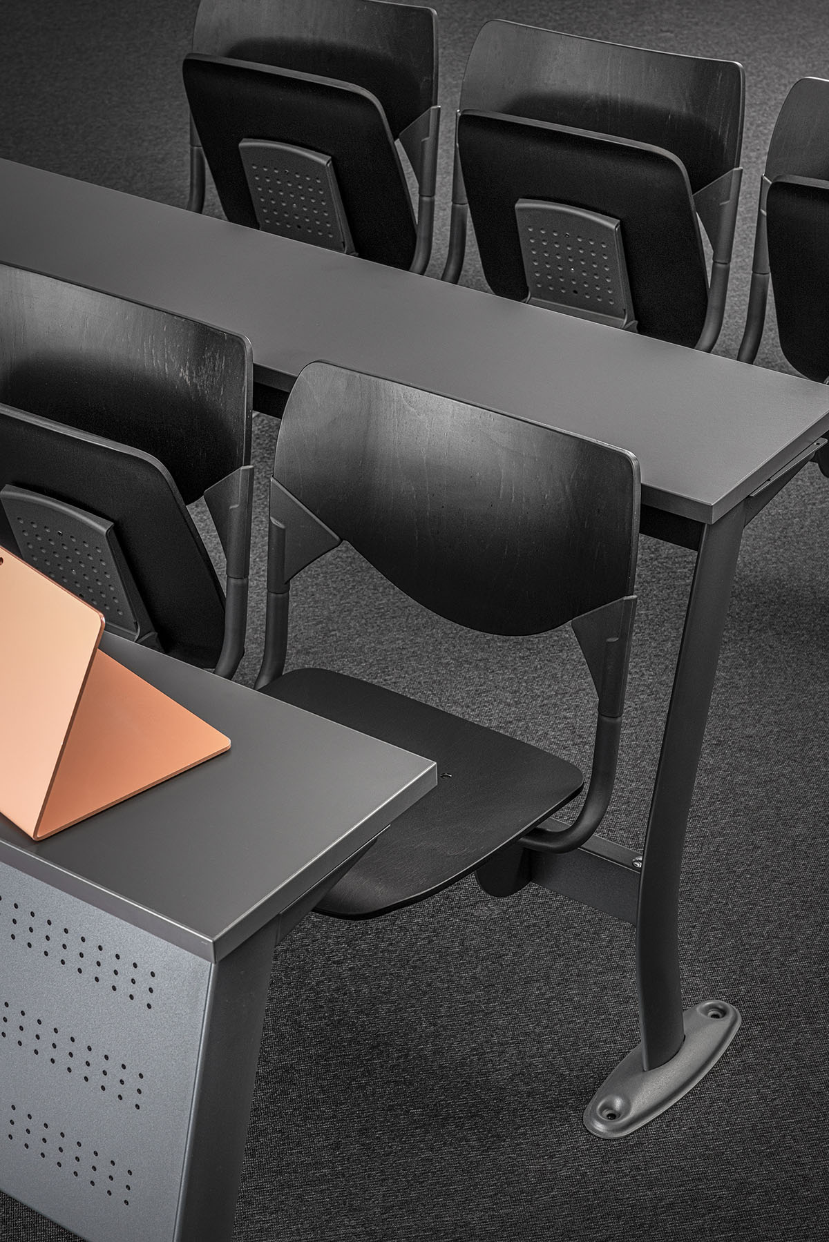 Gate Monoblocco è un sistema di sedute e banchi modulari, totalmente personalizzabile, ideale per università, aule scuola e sale convegni. Le sedute, disponibili in legn, in polipropilene o imbottite, sono dotate di un meccanismo di ribaltamento della seduta con sistema di frenatura per ammortizzare il movimento di ritorno. La struttura in metallo consente un fissaggio a pavimento che può adattarsi a pavimenti dritti, con gradoni o inclinati.