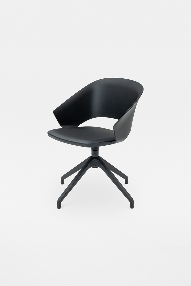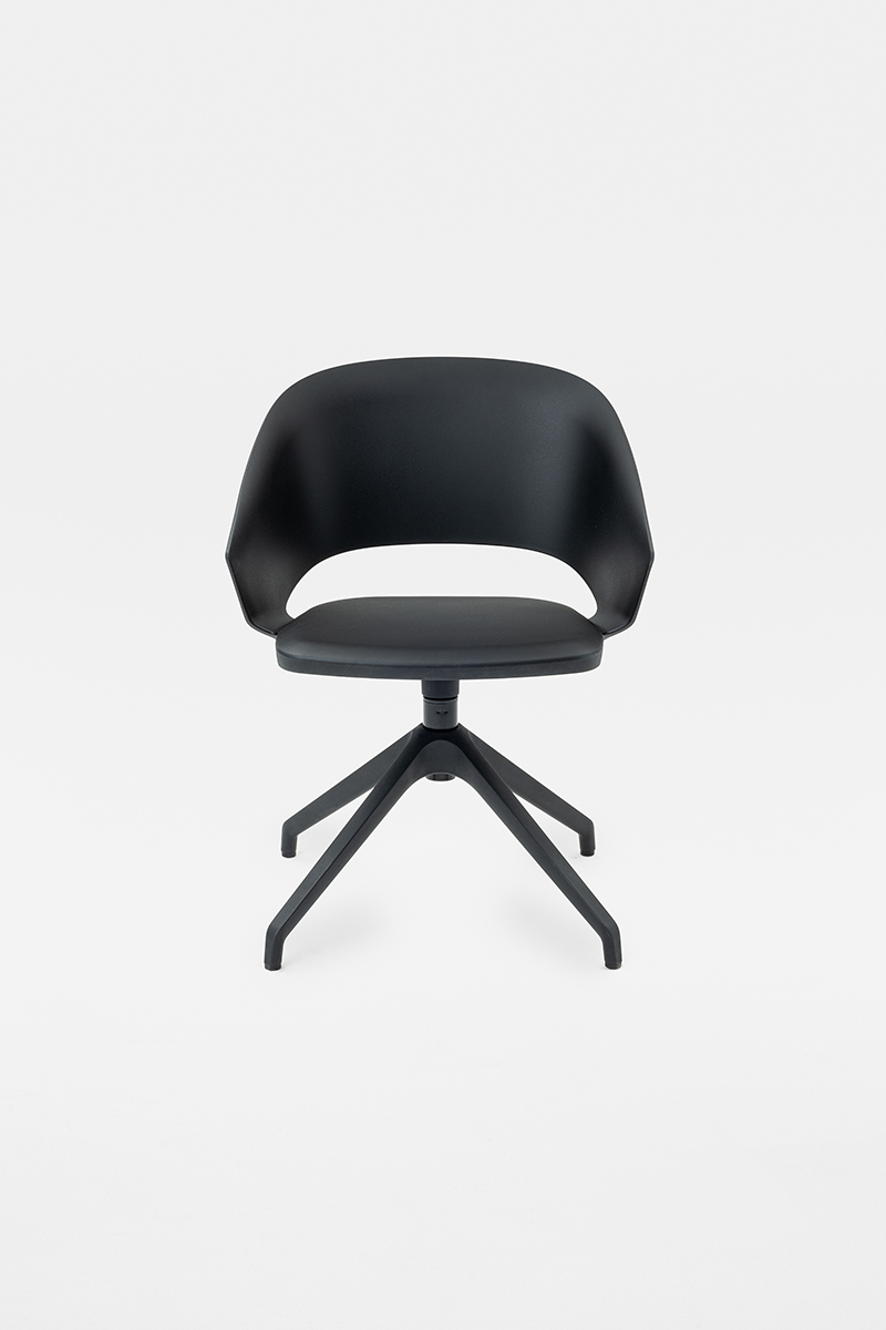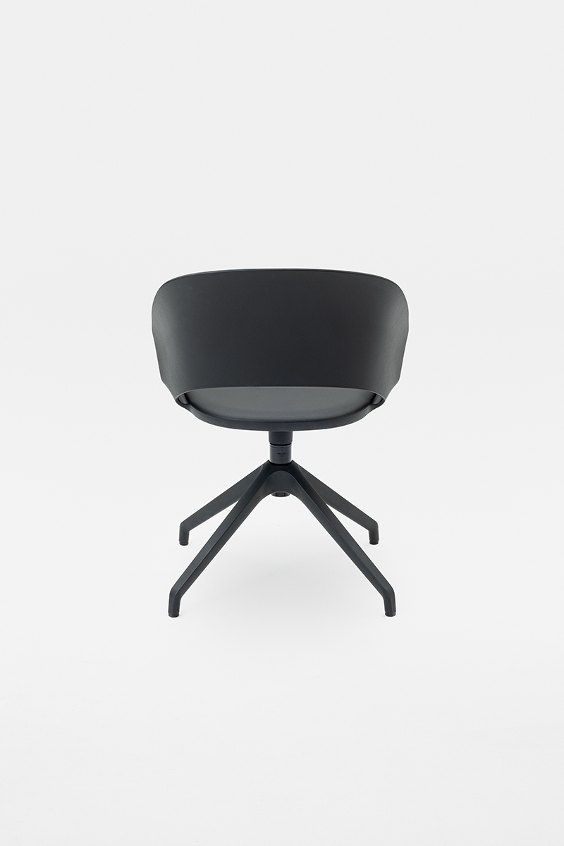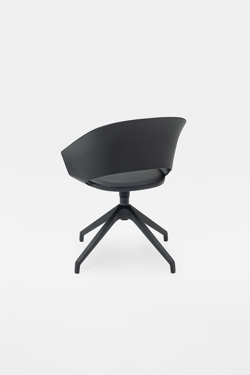 Sedia Icon con scocca in polipropilene, progettata per offrire comfort e versatilità in contesti ufficio, contract e residenziali. Le linee avvolgenti riprendono il design della versione originale imbottita, con lo schienale inclinato che si estende nei braccioli e culmina in una fascia che abbraccia la seduta, definendo un’estetica elegante e funzionale.