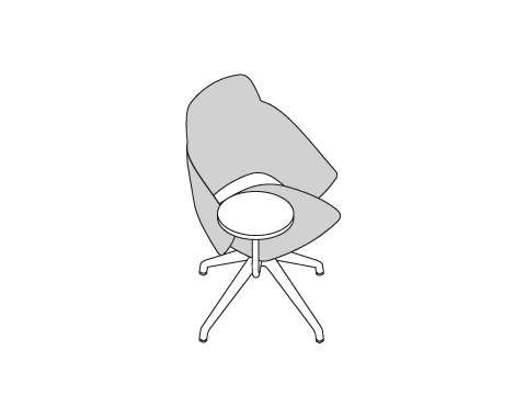 Versione con schienale alto, girevole, con base a quattro razze e tavoletta-scrittoio ideale per ambienti ufficio come sale meeting e conferenza, aree attesa e coworking.