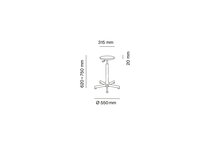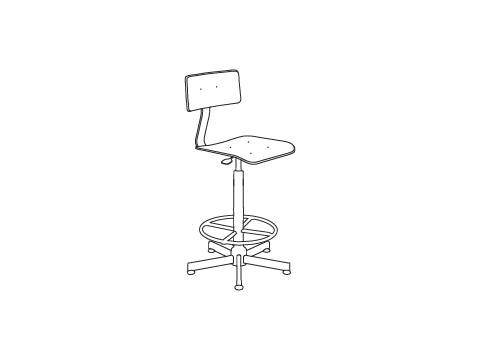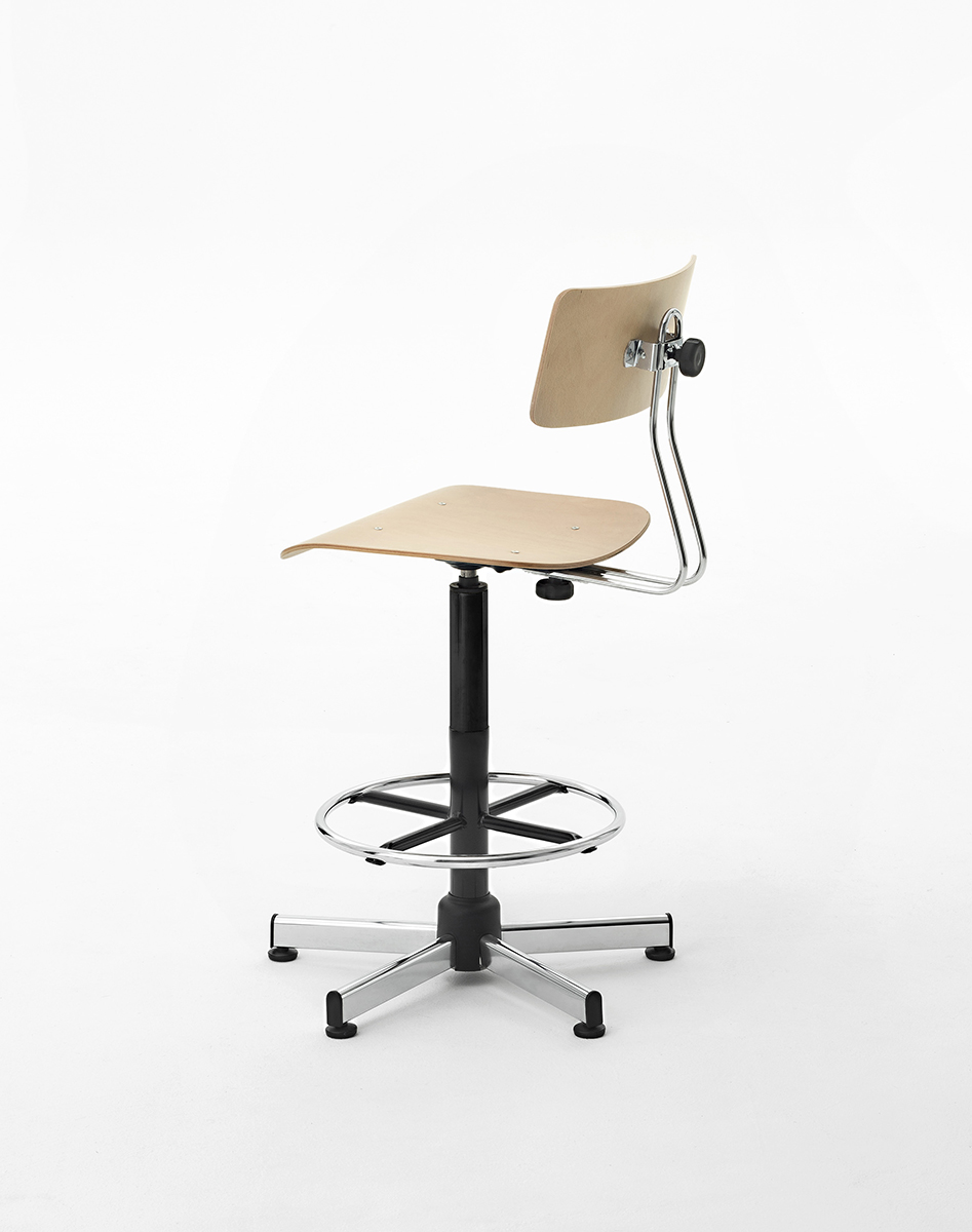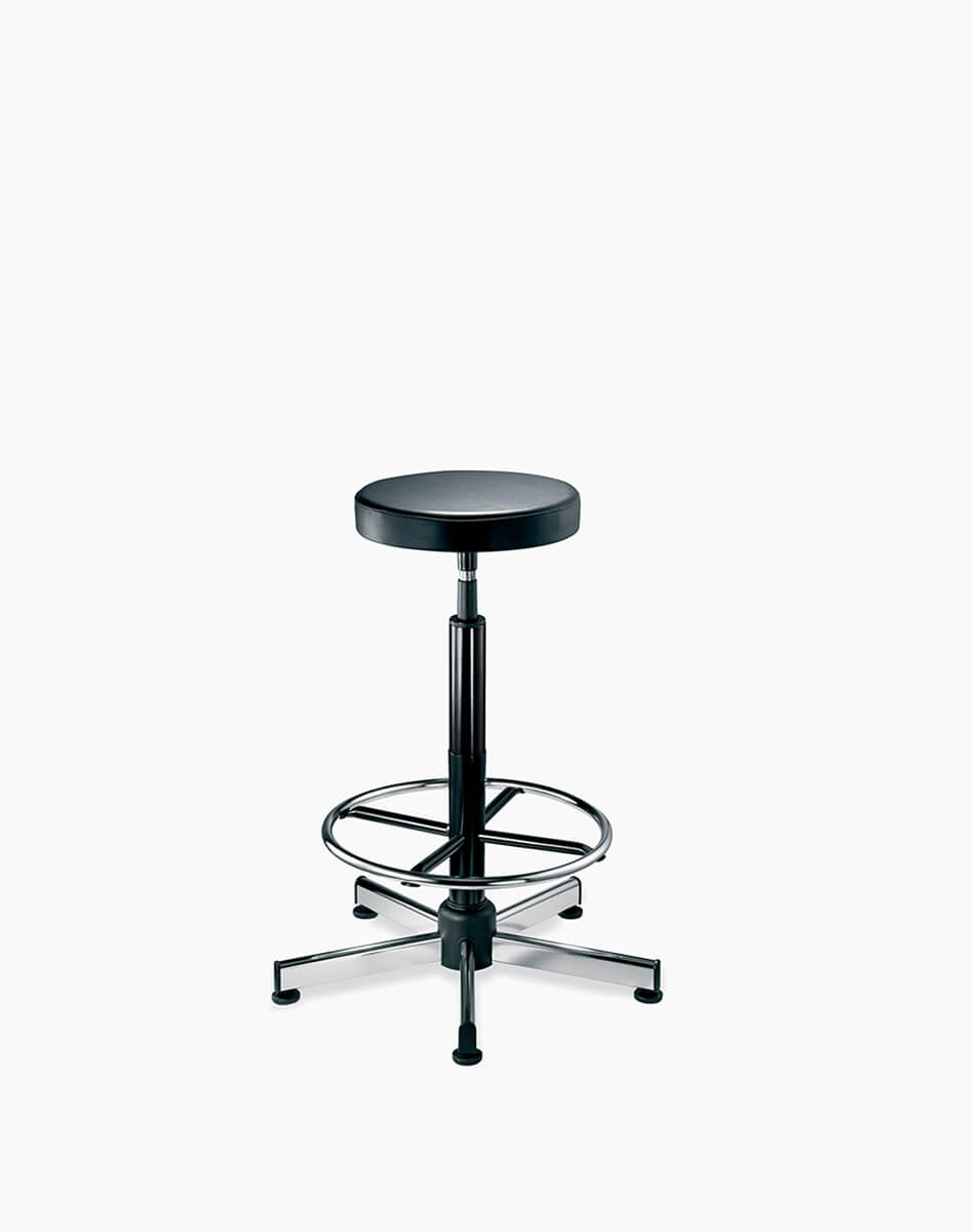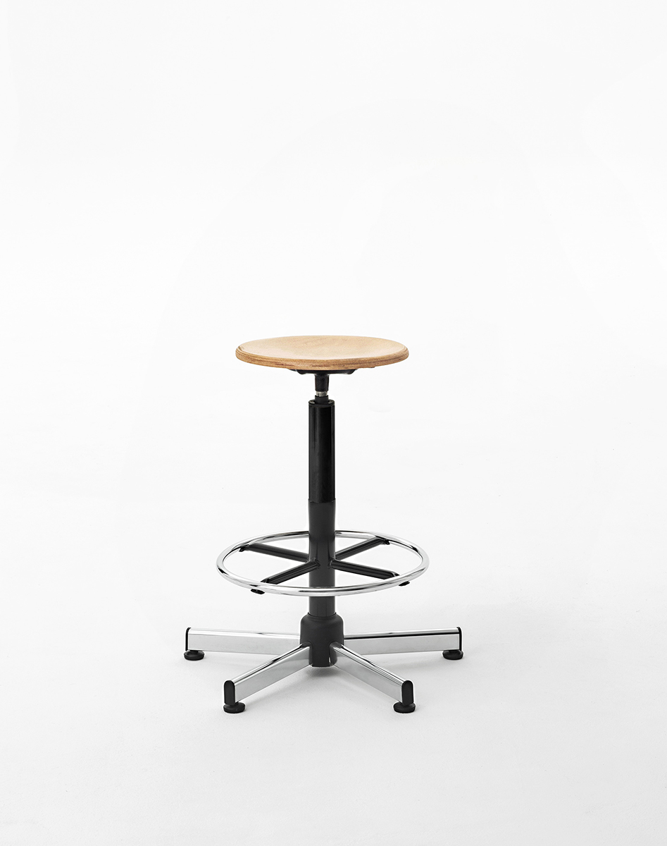 Sgabello regolabile in altezza a gas composto da una struttura interamente in acciaio robusta e stabile. Disponibile nelle versioni con sedile e schienale sia in multistrato di faggio che imbottiti. La versione accessoriata con ruote viene fornita senza poggiapiedi.