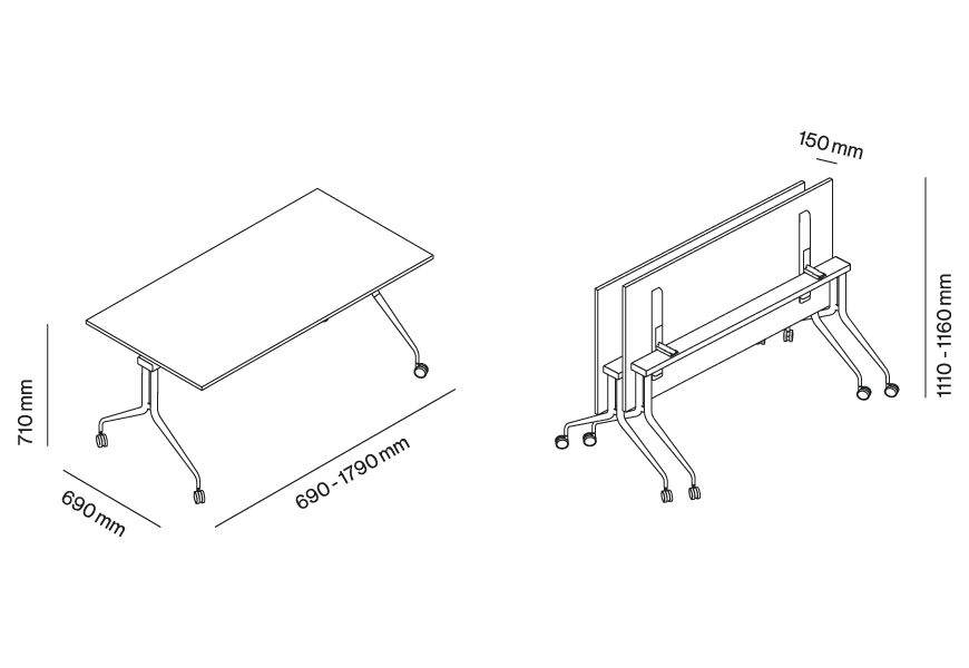 Un tavolo che unisce mobilità, praticità e solidità, pensato per rispondere con efficacia alle esigenze degli spazi di lavoro contemporanei.