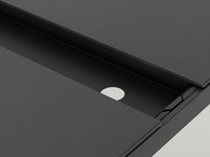 La cornice, oltre ad essere un dettaglio estetico, è funzionale a celare il sistema meccanico, così anche eventuali accessori di cui Foil può essere dotato, a partire dai pratici cassetti.