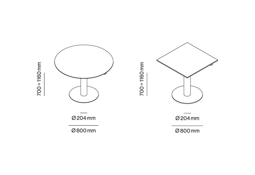 Tavolo con struttura in acciaio verniciato e piano disponibile sia quadrato che tondo, fino a 1600 mm di diametro, ideale per riunioni in spazi ufficio ma può essere utilizzato anche in aree meeting e zone di convivialità.