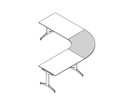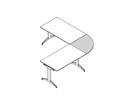Il nuovo componente Plus permette con facilità di unire due tavoli con un piano rettilineo o ad angolo aumentando le possibilità di configurazione, contenendo il numero di strutture utilizzate.