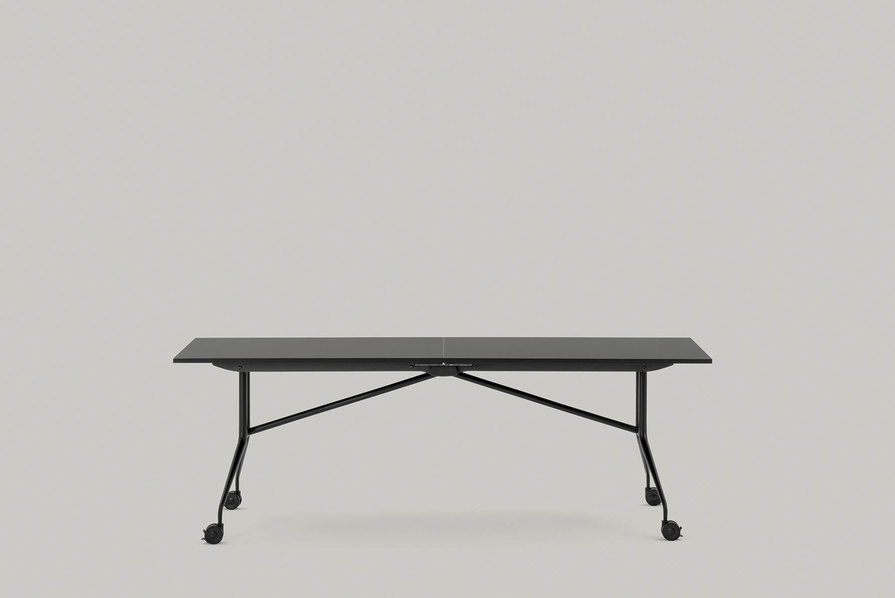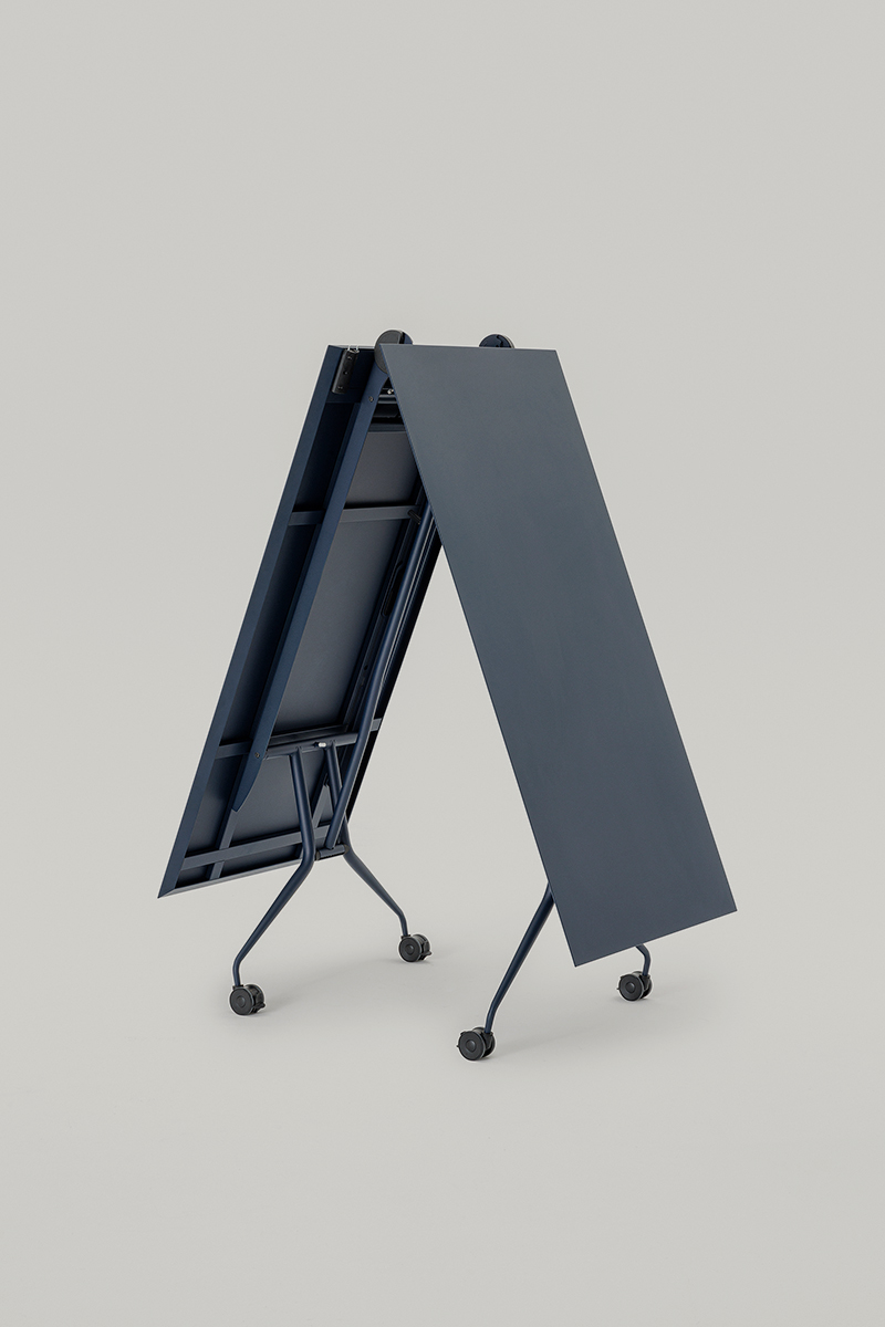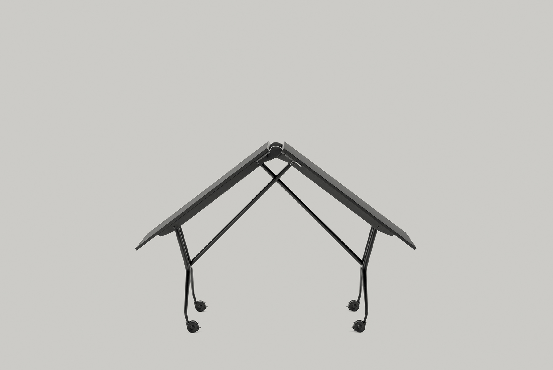 Un sistema di tavoli su ruote con chiusura intuitiva e sicura: si spostano e ripongono con facilità, anche con piani di grandi dimensioni.