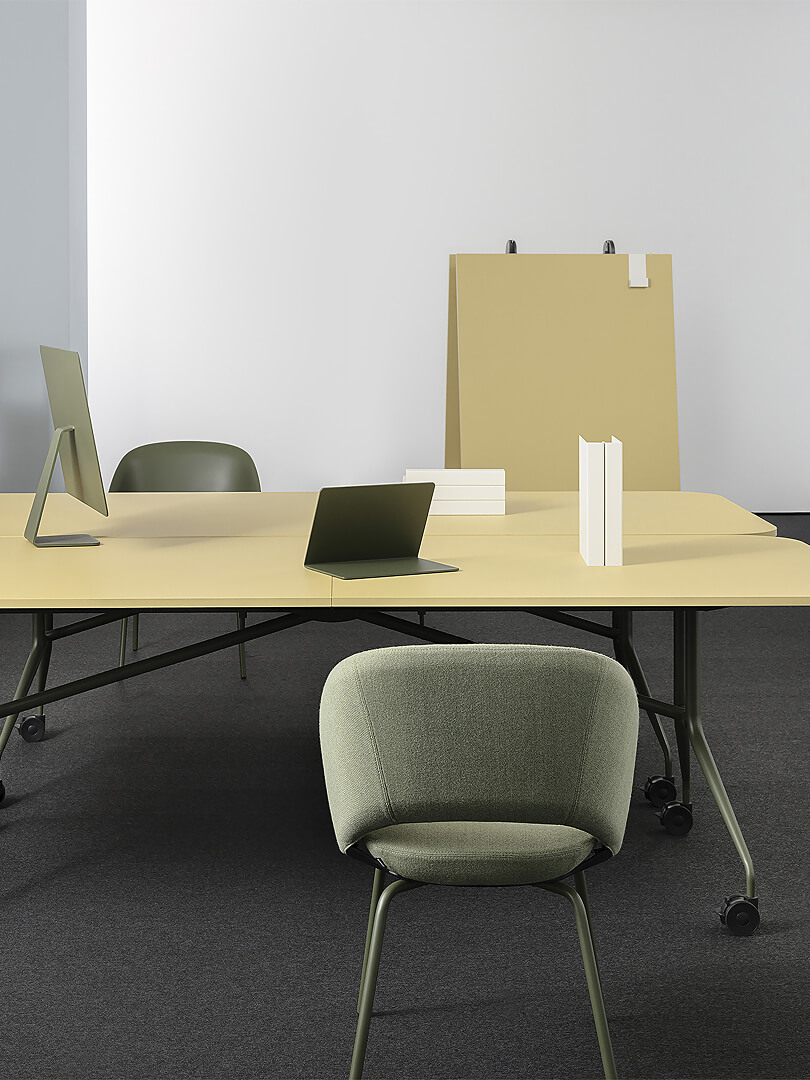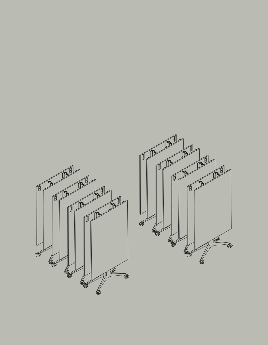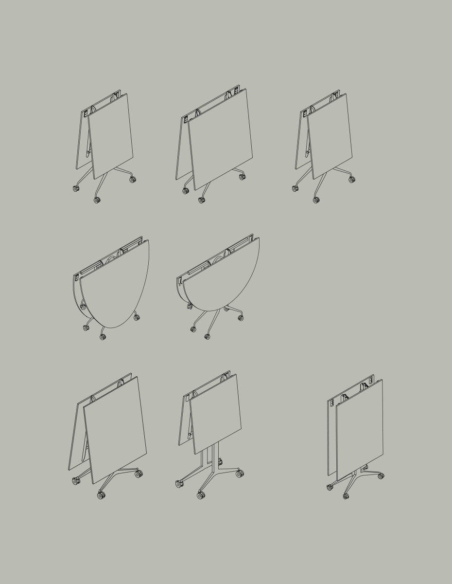 Caratteristiche tecniche come ruote e piani verticalizzabili rendono questa collezione adatta agli ambienti in cui sono richiesti frequenti cambiamenti nella disposizione e organizzazione.