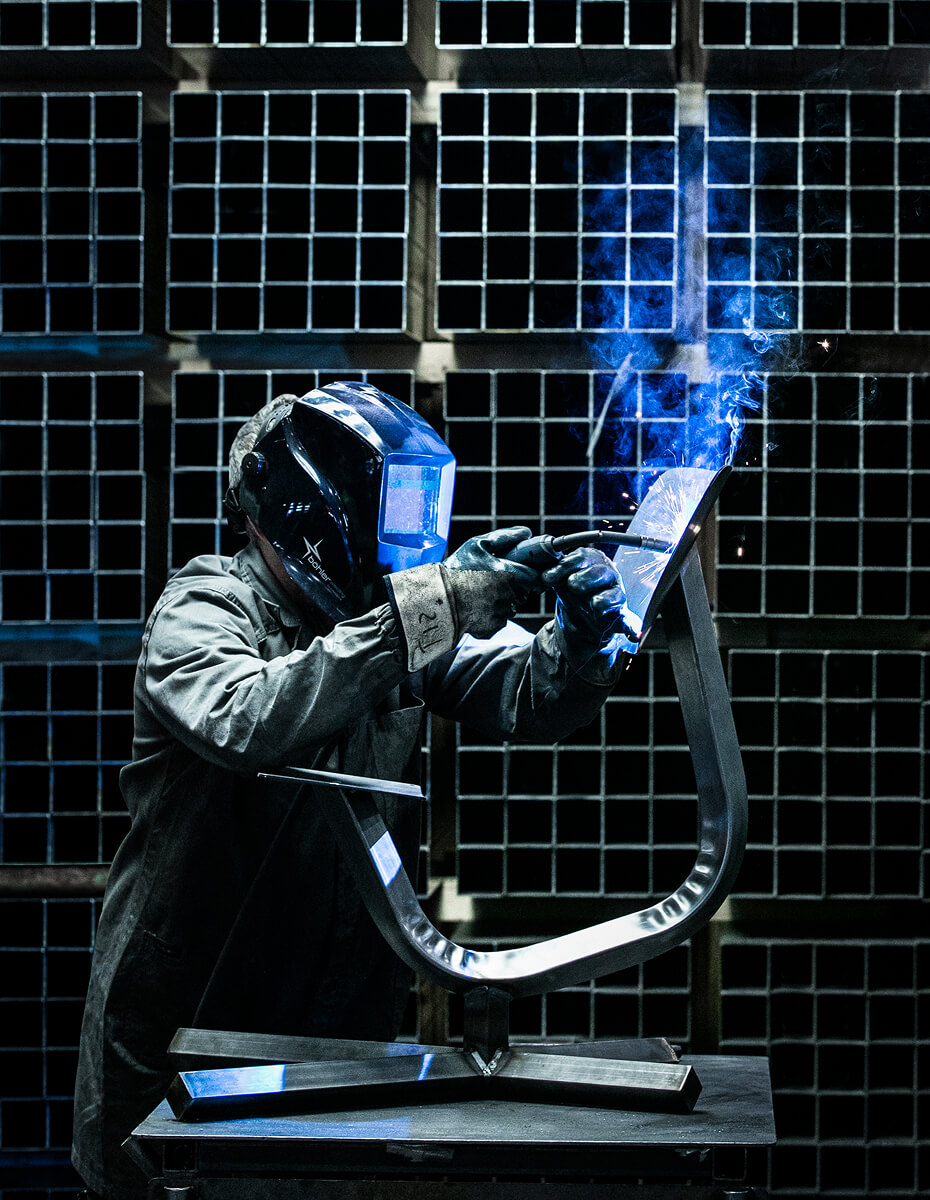 Distintivo è il tubolare metallico a sezione quadrata che dà forma alla struttura, in un gioco di pieghe e drappeggi che evidenzia l’expertise dell’azienda nella lavorazione del metallo.